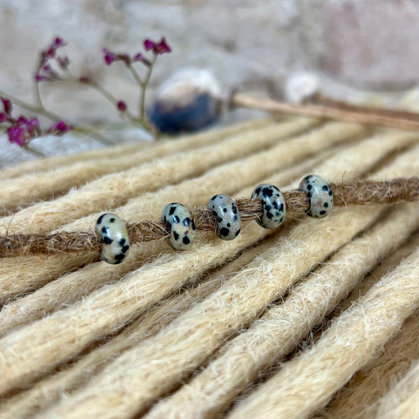 Dalmatiner Jaspis Edelsteinperlen für dünne Dreadlocks.