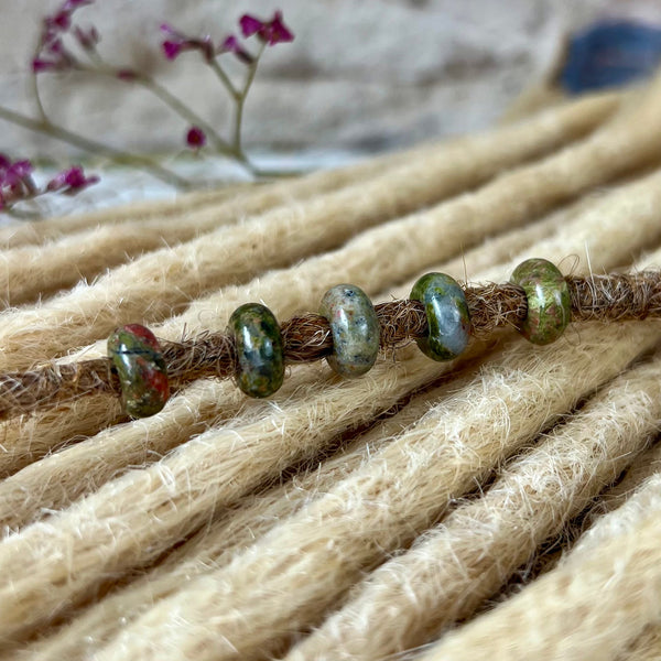 Unakit Edelsteinperlen für dünne Dreadlocks.