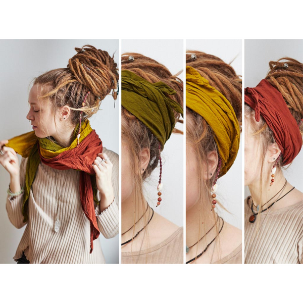 Dieses Dreieckstuch ist eine vielfältige Kopfbedeckung mit zahlreichen Anwendungsmöglichkeiten. Du kannst es als Halstuch, Kopftuch oder Haarband benutzen, was gerade für Dreads ein toller Hingucker ist.