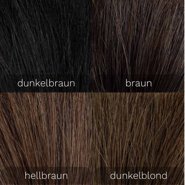 Im vorletzten Bild siehst du unsere vier dunkelsten Haarfarben nebeneinander.